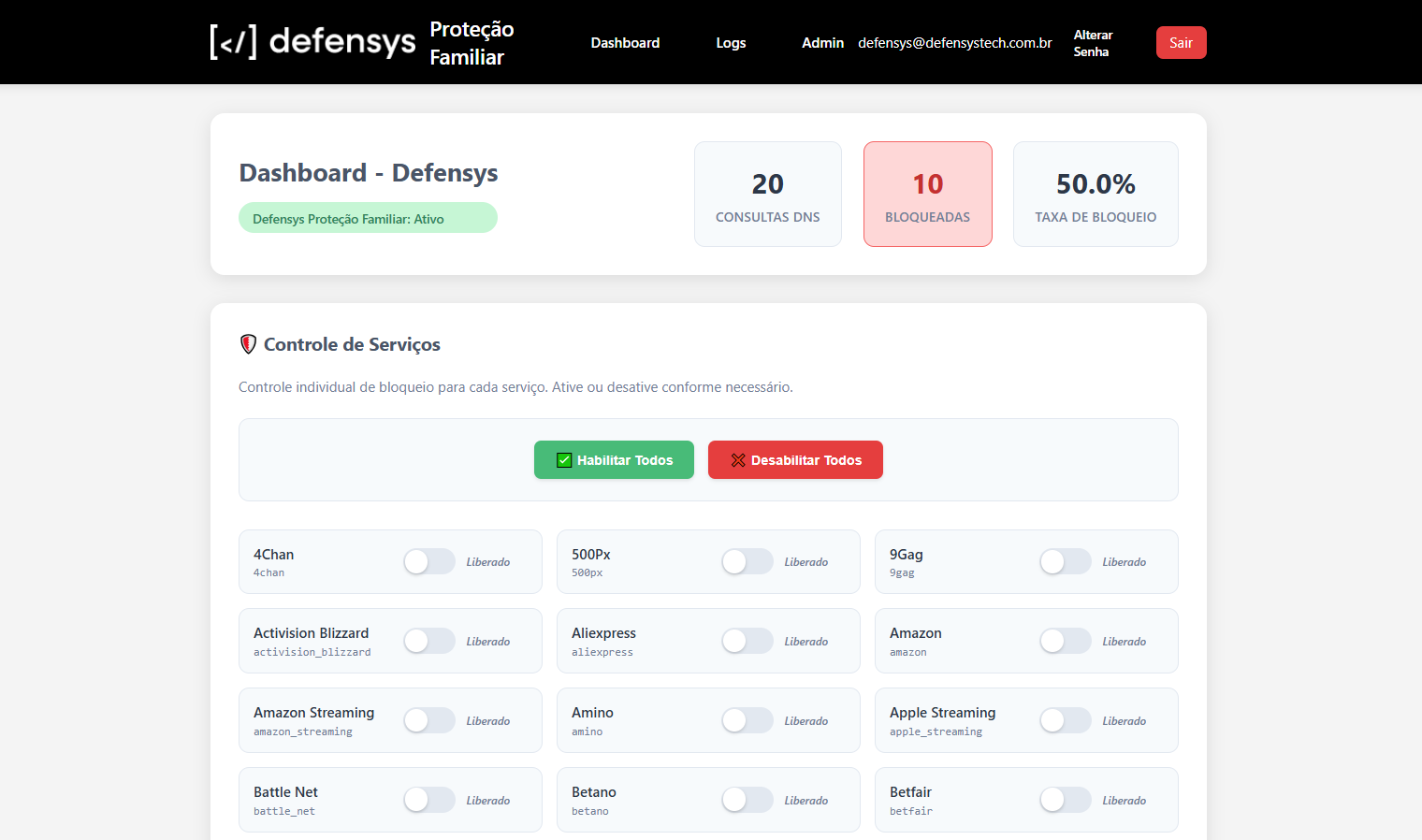 Nosso painel permite que você visualize exatamente quais domínios foram acessados por cada dispositivo da casa. Assim, você pode bloquear conteúdos indesejados de forma simples e rápida — e com total visibilidade.